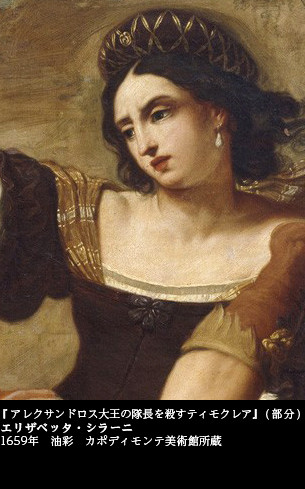 ユディトを主人公に女性の勝利を描いたエリザベッタ・シラーニ(1638~1665)には、もうひとつ、強烈な「男成敗」の絵がある。『アレクサンドロス大王の隊長を殺すティモクレア』(1659 カポディモンテ美術館)――。女性の復讐を描いた歴史画である。