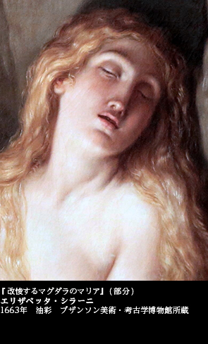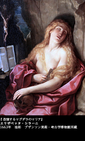 話をボローニャの女流画家、エリザベッタ・シラーニに戻そう。「男成敗」の絵ばかりでなく、エリザベッタは多くの女性の絵を描いた。その中でも、私にとって忘れがたいのは、『改悛するマグダラのマリア』(1663 ブザンソン美術・考古学博物館)という作品である。