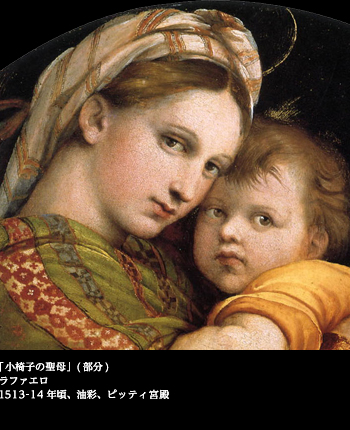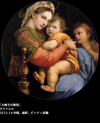 パリでもベルリンでもロンドンでも、ラファエロの描く聖母像には、特別なものを見る気持ちで接してきた。もちろん、私の好みもあって、それらのすべてがウィーンでの出会いのような濃密な陶酔を与えてくれる訳ではなかったが、中に1点、衝撃という点ではウィーンをしのぐ聖母像に出会った。フィレンツェのピッティ美術館が所蔵する「小椅子の聖母」がそれである。