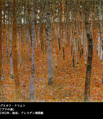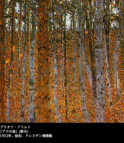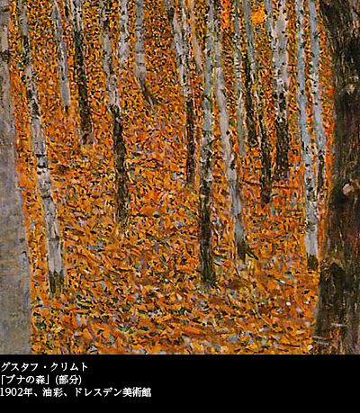 夏のアッター湖での自然との触れ合いは、「勝負師」クリムトの再生の時であった。樹々や森、そして大地から受けるオゾンや生命の気を、胸いっぱいに吸い込んだ結果が、もうひとつのクリムトを生み、我々に静かな感動を与えるのである。