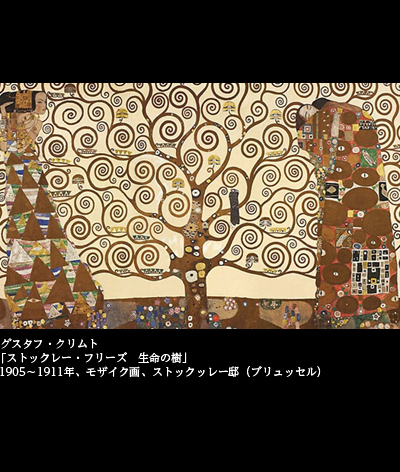 実業家で、コレクターとしても知られたアドルフ・ストックレーは「セセッシオン」を代表する建築家のヨーゼフ・ホフマンらウィーン工房に、新築の自宅のデザインを委託した。クリムトはダイニング・ルームのフリーズ(壁画)を担当し、1905年から1911年にかけて制作、完成したのが 「ストックレー・フリーズ 生命の樹」である。今もブリュッセルにその邸宅は残る。