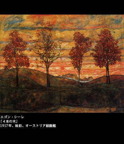 世紀末とはよく言ったもので、敢えて今流に言うなら、核戦争後の地球とでもいうか、あるいは、地球最後の日とでもいうか、いずれにしても、末期(まつご)の目に貫かれたシーレの哀しみの木の絵なのである。