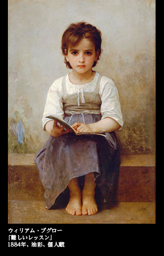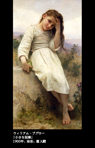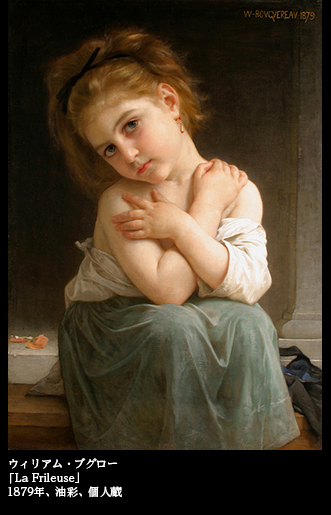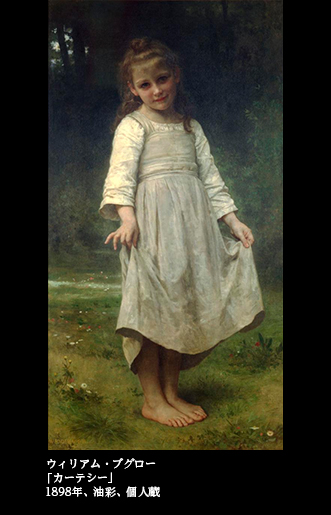 美術史を代表する大家ばかりを集めたようなところには、この人の名はない。だが、少女画というくくりを設けるなら、間違いなく、代表格として登場してくるだろう。ウィリアム・ブグロー(1825~1905)。