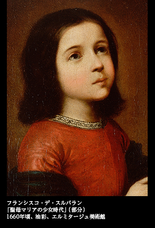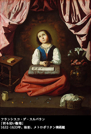 スルバランはベラスケスと同時代のスペインで、セビリア(セビーリャ)を拠点に活躍、宗教絵画を多く手がけ、わけても聖人の肖像画に独自の境地を築いた。聖母像では、「無原罪の御宿り」を何点も手がけているが、聖母の少女時代を描くというのは、スルバランの発明であるという。