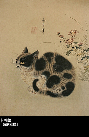 猫に菊を合わせるのも東洋画の習いで、「菊」は中国語で「居」に似ているところから、老境を悠々自適に楽しむ隠遁者を意味するという。卞相璧には「菊庭秋猫(ククチョンチュミョ)」と題された絵もある。