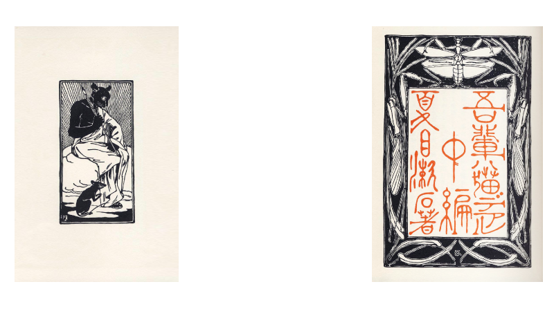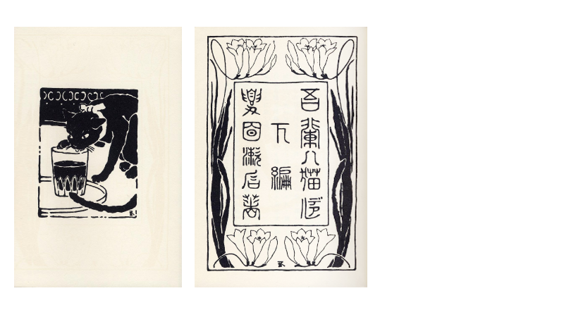 表紙画やカットデザインを含めた装幀を橋口五葉に託し、各章の物語中に挟みこむ挿絵を中村不折と浅井忠に依頼したが、専門の画家にお任せするなどというレベルではなく、自らイニシアティブをとって、『猫』の製本化にあたり総合プロデューサーの役割を果たしたのだった。