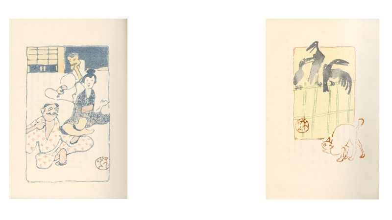 現在書店に並ぶ『猫』の文庫本では、角川文庫が今も初版の挿絵を載せている(すべてではないが)。絵のサイズが小さく、印刷も鮮明でない欠点はあるものの、橋本五葉や中村不折、浅井忠といった人たちの作品を加味した『猫』は、やはり手にとるのが実に楽しい。