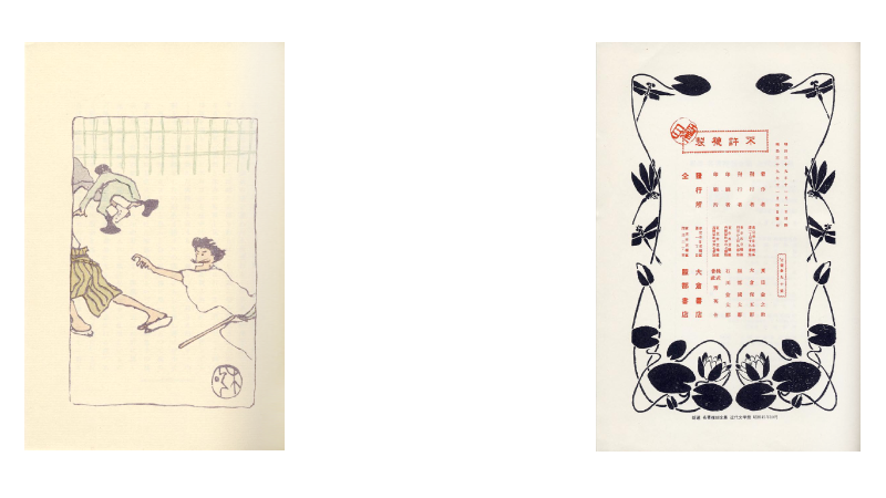 橋口には西洋体験がなかった。しかも、『猫』のデザインを手がけることになった1905年と言えば、まだ24歳の若さで、東京美術学校を卒業したばかりだった。在学中から『ホトトギス』の挿絵を描き、また漱石が英国留学前に奉職していた熊本の第五高等学校に兄が学ぶなど、それなりの縁はあったにせよ、何とも大胆な抜擢である。