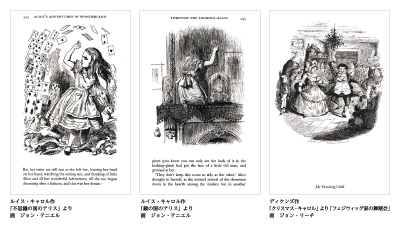 アリスもディケンズも、今では挿絵がアートとして単独に印刷され、愛好家たちによって飾られている。物語と離れて壁にかけられても、無論、それは物語の記憶を留めている。座右の書として、いつも手に届くところに置いておくのも、愛する本に対するひとつのスタイルであろう。だが、書から抜け出て飾られた絵を眺めながら、本との愛しい思い出を好きなだけ反芻するのも、物語とアートのマリア―ジュとして、望ましき幸福な姿のように思える。