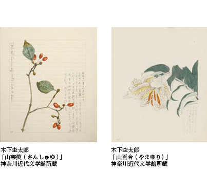 実は「百花譜」は、もうひとつの終末を抱えていた。昭和20年6月6日、泰たいさんぼく山木を描いた余白に「胃痛、褥中に之を写す」とある。この年の春以来、胃病が悪化し、結局はそれが不治の病となって終戦後の10月15日に歿することになるのだが、衰え行くおのれの命の翳りを意識しつつ、木下は残る力を懸けるように、草花の命を写し続けたのである。