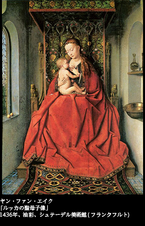 その中にあって、比較的早い時期に描かれ、私のお気に入りでもあるヤン・ファン・エイクの作品から見て行こう。1436年の作と言われる「ルッカの聖母子」である。