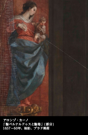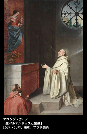 アロンゾ・カーノの作品、「聖ベルナルドゥスと聖母」(1657~60)は、2018年、国立西洋美術館や兵庫県立美術館を巡回した「プラド美術館展」で展示された作品だが、ある意味、訪れた人々の目を最も驚嘆させた1点であった。
