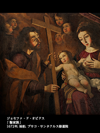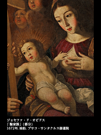 オビドスはその作品の殆どが宗教画であり、ポルトガルのバロック絵画画家として、また珍しい女流画家として、近年とみに評価が高まっている。このオビドスが1664年に描いた「聖家族」でも、聖母は乳飛ばしの秘儀を演じている。