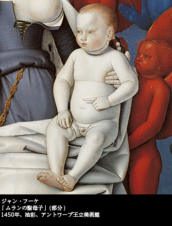 フーケはイタリアに学んで、初期ルネサンスをフランスにもたらした画家と言われるが、この「ムランの聖母」は、そういう美術史学的な知識を突きぬけてしまっている。私は初めてこの絵を知った時、現代作家の絵ではないかと誤解してしまったが、それほどに、突然変異的に現れた謎の絵なのである。