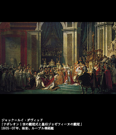 ダヴィッドがナポレオンを描いた作品中、屈指の大作は、1804年に執り行われた戴冠式を描いた『ナポレオン1世の戴冠式と皇后ジョゼフィーヌの戴冠』(1805~1807)であった。作品の完成後、1808年には、ダヴィッドはナポレオンから「帝国における騎士ダヴィッド」という爵位を授けられている。