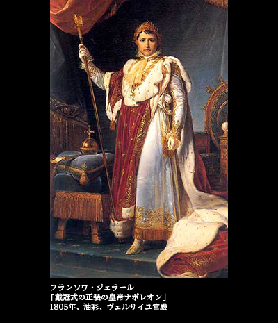 ダヴィッドの弟子のフランソワ・ジェラール(1770~1837)も、戴冠式に臨んだ正装の立ち姿をものしている。『戴冠式の正装の皇帝ナポレオン』(1805)――。