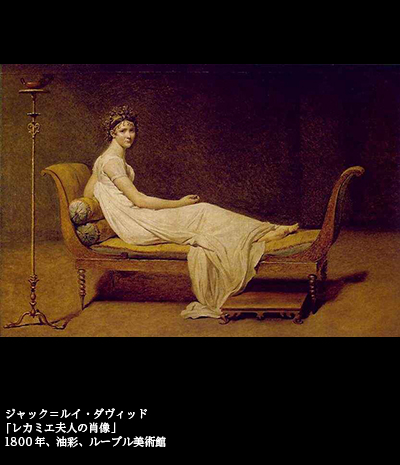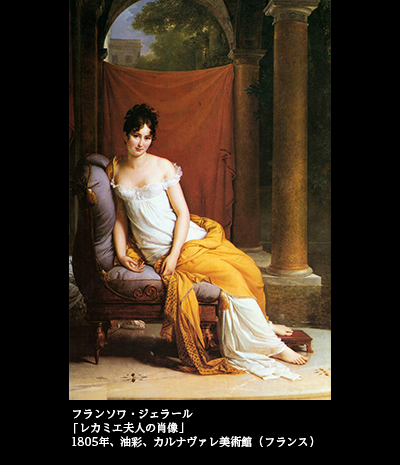 このことを裏づける興味深いエピソードがある。当時の社交界の名花にレカミエ夫人という女性がいた。15歳にして30歳近くも年上の富裕な銀行家と結婚、文化人や政界著名人の集まるサロンの花形として知られた。ナポレオンの妻となったジョセフィーヌとも一時は交友関係を結び、ナポレオン当人もかなり熱をあげたと言われる。