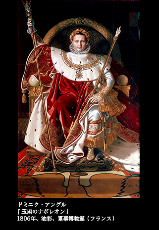 戴冠式のナポレオンを、もうひとり、著名な画家が描いている。ドミニク・アングル(1780~1867)の『玉座のナポレオン』(1806)――。