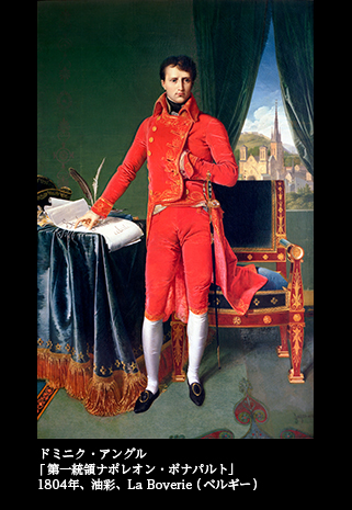 フランス南西部のムントーバン近郊に生まれたアングルは、17歳でパリに出、ダヴィッド門下に学んだ。ローマ賞を受賞後、1806年にローマに留学、そのまま18年もの間、イタリアに留まった。1824年、44歳でパリに戻った時には、既にナポレオンは3年前に世を去っていた。