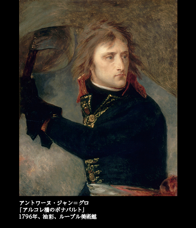 1796年に、『アルコレ橋のボナパルト』を描いたのを皮切りに、グロはナポレオンのお抱え絵師として、英雄に奉じる多くの作品を残した。アルコレ橋は北イタリアのヴェローナ近郊にあり、オーストリアとの戦争で重要な拠点となった所で、ナポレオンは困難の果てにここを奪取することに成功した。絵画は無論、かなりの理想化を経たものには違いないが、危険を省みずに軍を指揮する若き軍人の溌剌とした輝ける姿を描いている。