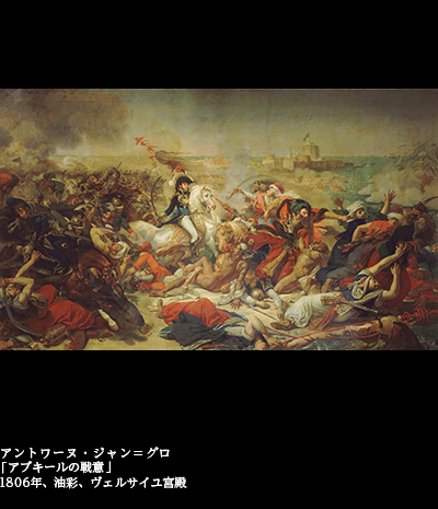 続く『アブキールの戦意』(1806)では、直接にナポレオンは登場しないものの、オスマン・トルコ軍に対するフランス軍の戦勝を描き、プロイセン・ロシア連合軍との戦いを描いた『アイラウの戦い』(1808)では、雪に覆われた戦場での凄惨ともいえる苦難の様子を徹底して描いている。