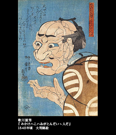 さて、国芳と西洋絵画とのつながりの可能性ということになると、次の絵も外せない。『みかけハこハゐがとんだいゝ人だ』(見かけは怖いがとんだいい人だ)――。