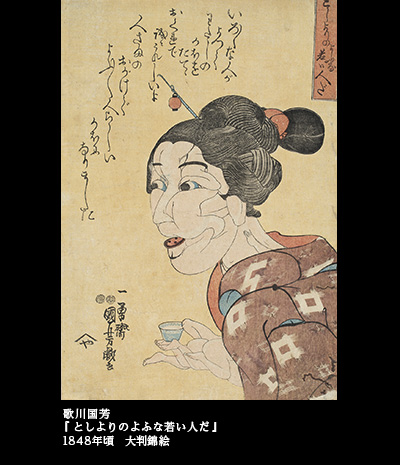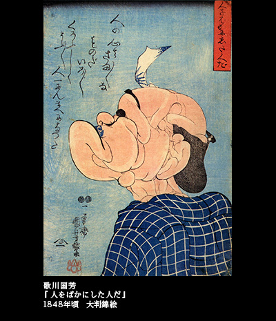 ひと目見れば、そのおかしみに、頬が緩まぬ者はいないだろう。余人の追随を許さぬ国芳の才は、ここでもきらきらと輝いている。