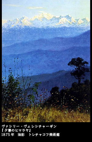 異境、辺境の風俗や自然を描いたヴェレシチャーギンの絵は、戦争という熾烈な劇の幕間に奏される間奏曲のようなものであったかもしれない。しかしながら、戦争画を主流としつつ、戦いとは無縁の風俗、自然を描いた絵もまた、ヴェレシチャーギンの画魂を支えるまぎれもない片翼であったのである。