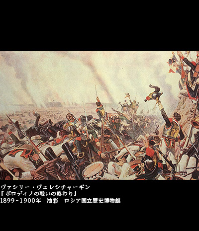 ヴェレシチャーギンは、情熱の対象となるものをもつと、全精力を傾けてのめり込むタイプだったが、ナポレオン軍との攻防については戦史を徹底研究、本まで出すほどだった。トルストイの『戦争と平和』を読んだことが、半世紀以上も前の戦争に向かわせるきっかけになったという。