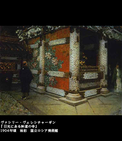 一説によれば、ヴェレシチャーギンが日光を訪ねたのは、皇帝ニコライ2世から、日光東照宮を描くようとの密命を受けたからだともいわれる。