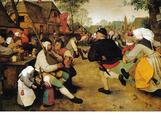 少年の日の私が出会った「農民の婚宴」は、納屋の中の人間集団だけを描いたものながら、寓意をしのばせつつも、そこから飛翔し、「雪中の狩人」的な次元へと半歩を踏み出した作品だった。素朴な結婚式の花嫁も、呑み食らい浮かれ騒ぐ農民たちも、大きな宇宙の摂理の中に束の間の晴れの時をすごしていたのである。