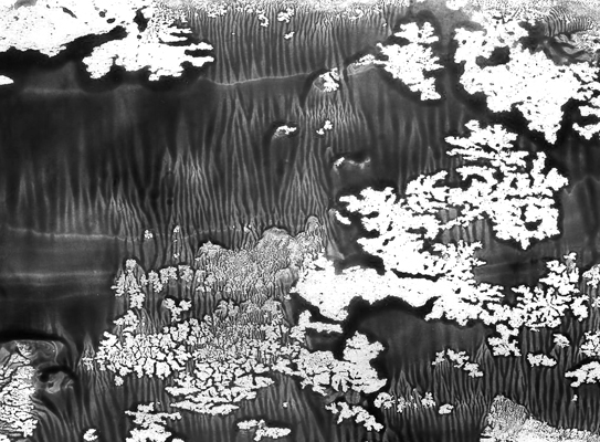 少年は社会の矛盾を一身に引き受け、何度となく泣き腫らしたような顔で、世の習いになびくことを拒み、乾いた唇をかむ。まるでキリストの少年版のようですらある。その孤独な少年が、雪に覆われた丘にたたずむ。ゆるやかな白い斜面が彼方へと下り、川原らしい雪原へとひろがる。明らかに、ブリューゲルの「雪中の狩人」を意識した構図だ。