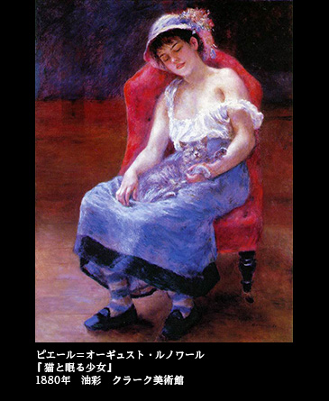 孤独な魂と猫との響き合いは、12年後に描かれた『猫と眠る少女』(1880 クラーク美術館)という絵にも引き継がれている。