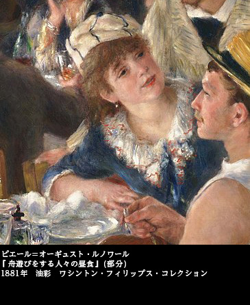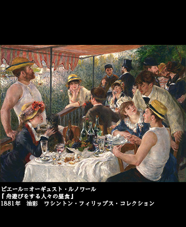 なお、画面左端、犬と戯れる女性は、後にルノワール夫人となるアリーヌ・シャリゴ嬢である。当時はお針子として働いていた。