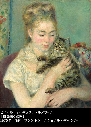1875年の作になる『猫を抱く女性』(ワシントン・ナショナル・ギャラリー)――。優美なお嬢さんが、猫を抱きかかえる。やさしげな眼差しが猫に注がれるが、猫の方はどうも落ち着かない。
