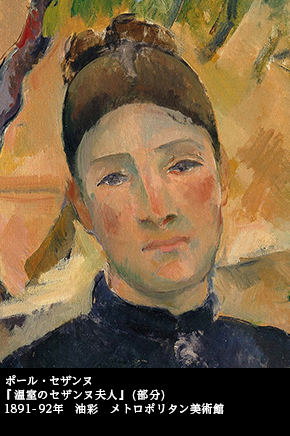 従来のセザンヌ評者は、夫人と背景の考えぬかれた配色や構図の妙を説く。だが私の正直な印象では、それ以上に、訴えかけるような夫人の表情が目を射貫く。