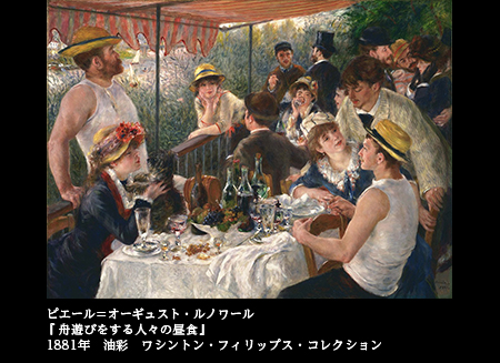 ある意味でこの絵は、『テュイルリー公園の音楽』に描かれた、花の都の緑陰に憩い、野外演奏を楽しみに集まる人々の姿と対をなしている。