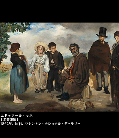 『テュイルリー公園の音楽』と同時期に描かれた、音楽がらみの絵がある。『老音楽師』(1862 ワシントン・ナショナル・ギャラリー)――。