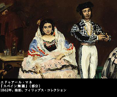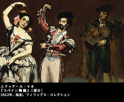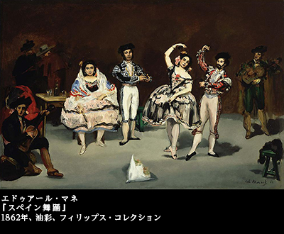 1862年の8月にマドリッドの王立劇場の舞踊団がパリを訪れ、3か月にわたる公演を繰り広げると、マネは早速劇場に足を運び、のみならず、ダンサーたちをアトリエに呼び、ポーズをとらせた。こうして完成されたのが、『スペイン舞踊』(1862 フィリップス・コレクション)である。