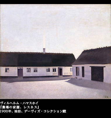 『農場の家屋、レスネス』(1900)――。ハマスホイは、夏になると毎年のように都会を離れ、自然の豊かな郊外に滞在した。世紀の変わり目、1900年の夏に訪ねたシェラン島西部のレスネスにある農家を描いたのが、この絵である。