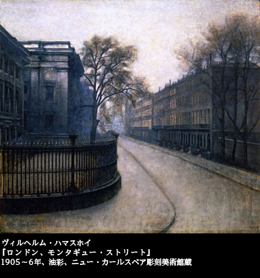 1905年の晩秋から3カ月ほどをロンドンに暮らしたハマスホイは、仮住まいの窓から見える景色を絵にした。