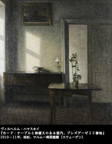沈黙の奥にひそむ饒舌の気配――。風化した記憶の底に、なおも鮮やかさを失わずにひそむ1点の生命の輝き――。室内画を描く時のハマスホイと、何ら違いはないのである。