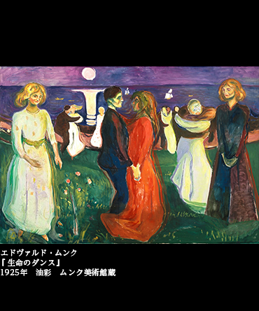東京都美術館のムンク展では、この1925年版の『生命のダンス』に現れる光の帯を、何の躊躇もなしに、夏の夜、満月が照らし出したものであると断言していたので、正直なところ、大いに驚いた。
