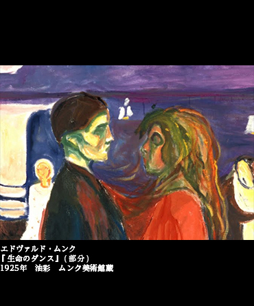 久しぶりに出会った『生命のダンス』は、「べろ」から見ても代表格となる作品だ。私はてっきりオスロで見た作品との再会だと思って見たのだったが、後で確認したところでは、オスロの国立美術館で見たのは1899年から1900年にかけて描かれたオリジナルで、東京にやってきたのは、画家自身によって1925年に再度描かれたセカンド・バージョンだった。