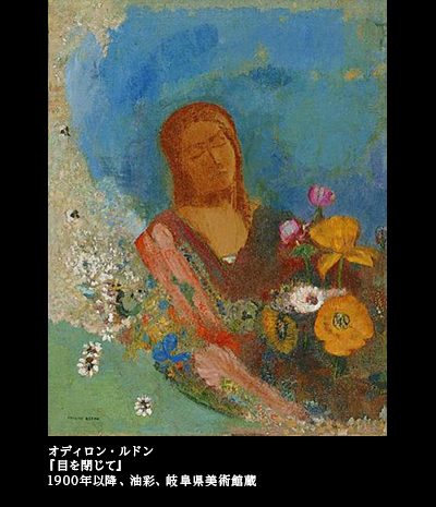 さて、今回のルドンの話を、私はオルセー美術館所蔵の『目を閉じて』(1889)から始めた。その別バージョンが岐阜県美術館にあることも記したが、最後はやはり、この岐阜版の『目を閉じて』にしめてもらおう。