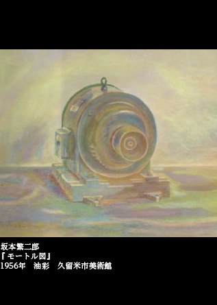 「モートル」とはモーターのことで、安川電機から制作依頼を受けて描いたものだったという。現代生活で使われる電機製品を、明るい家庭、乃至は作業現場の風景として広告風に描くことはいくらでも可能だったろうが、さすがに坂本はそうしたありきたりの愚には陥らず、モーターをでんと置き、単独の主役で描いて見せたのだった。