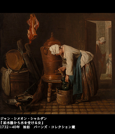 『給水器から水を受ける女』(『給水器の前の女』とも。1732~40 バーンズ・コレクション蔵)――。