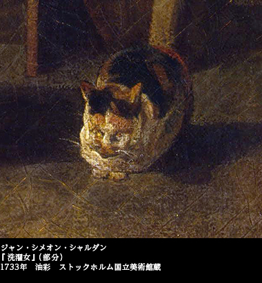 静物画の先駆者的画家として、美術史に名を留めるシャルダン――。その彼が、同時に猫絵画家としても大きな足跡を残したことは、決して偶然ではないだろう。生命あるものと生命なきものと、その両者に愛の眼差しを注ぎ得る人だったからこそ、可能な道だったのである。
