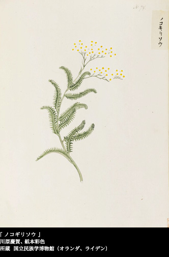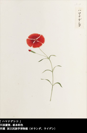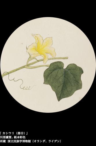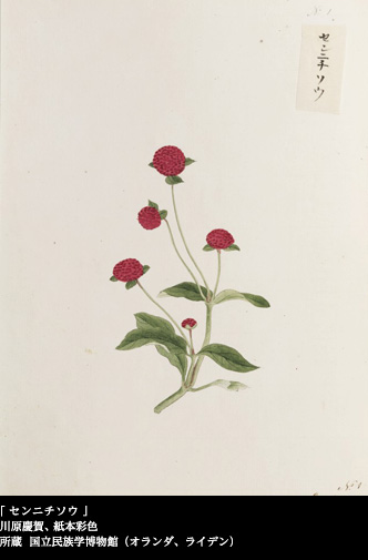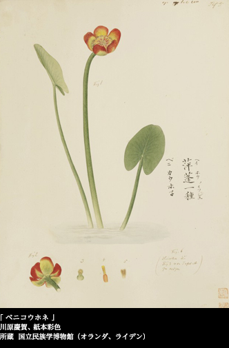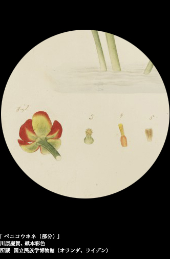 種苗や標本など、シーボルトが日本から持ち帰った植物資料は数知れないが、最も多くは植物画であった。クック探検隊の植物学者ジョセフ・バンクスにシドニー・パーキンソンという絵描きがいたように、シーボルトにもその目となり記録者となった絵描きがいた。長崎の絵師、川原慶賀(1756~1860?)である。