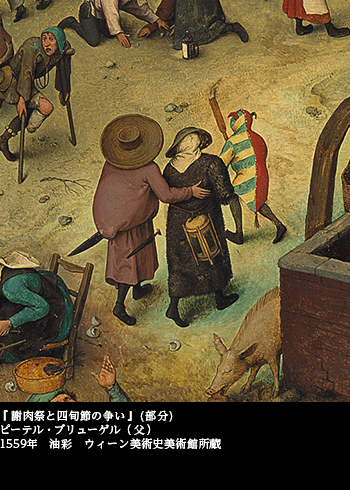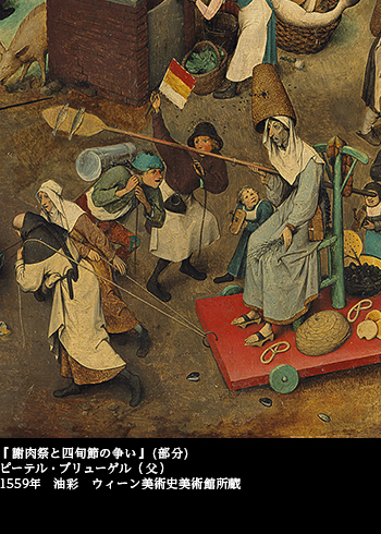 2つの時節――或いはそれらが象徴するカソリックとプロテスタントの対立、諍いのどちらかの側につくのではなく、両者ともに突き放して、世の習い、流行りに浮かれ騒ぐ愚かさを喝破して見せたのである。ブリューゲルの抱えていた独立不羈の精神の逞しさ、尊さに、脱帽させられる思いがする。
